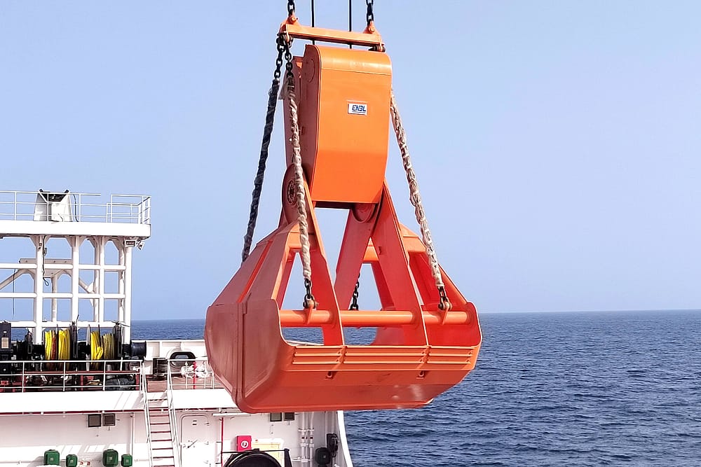 Specially engineered to handle loose bulk cargo such as bauxite, coal, and sand, the ENBL scissor grab is known for its lightweight structure, robust build, and high operational stability. It operates using a dual-rope mechanical opening and closing system, offering efficient clamping force and optimal material containment even in offshore working environments.